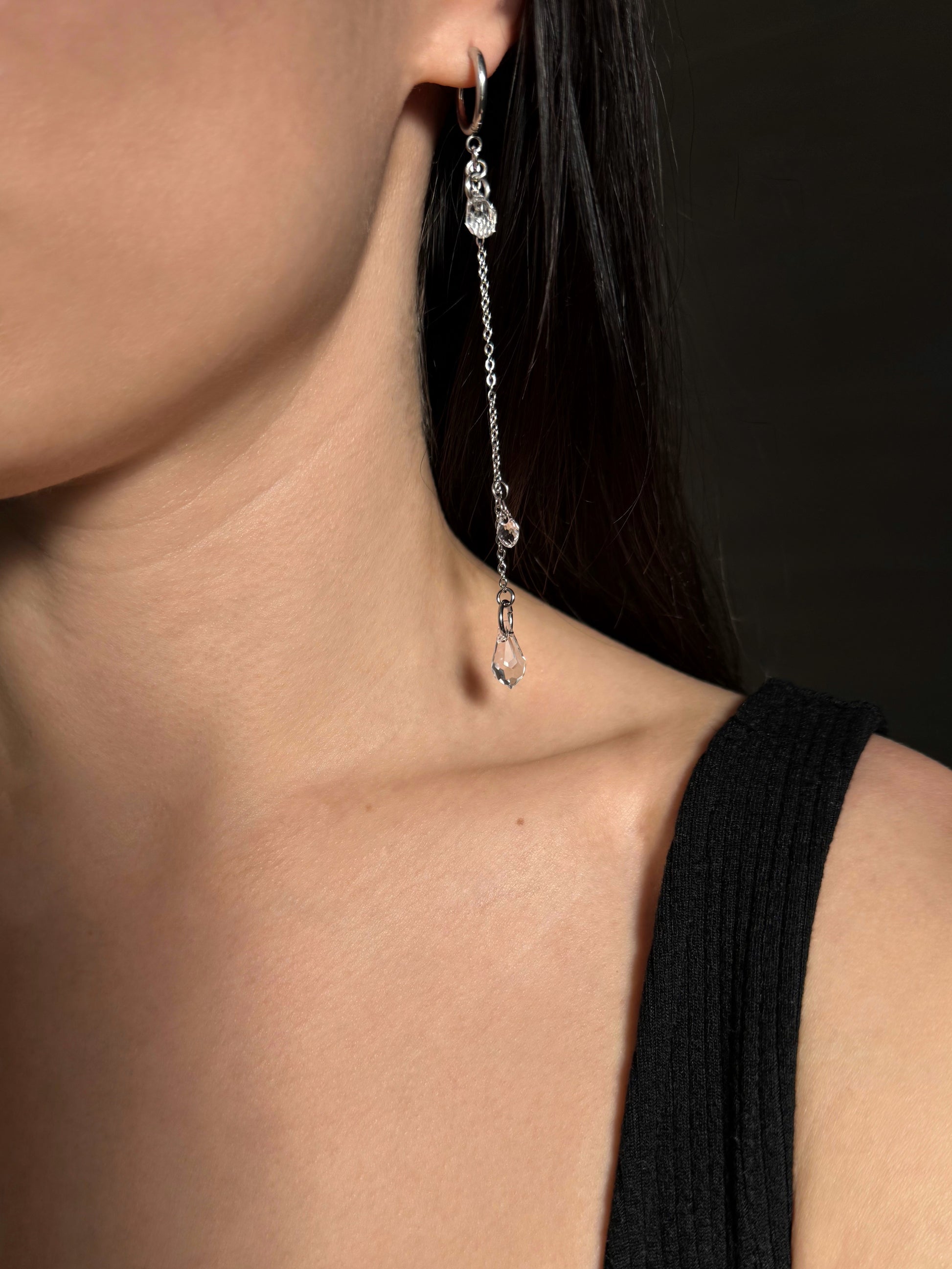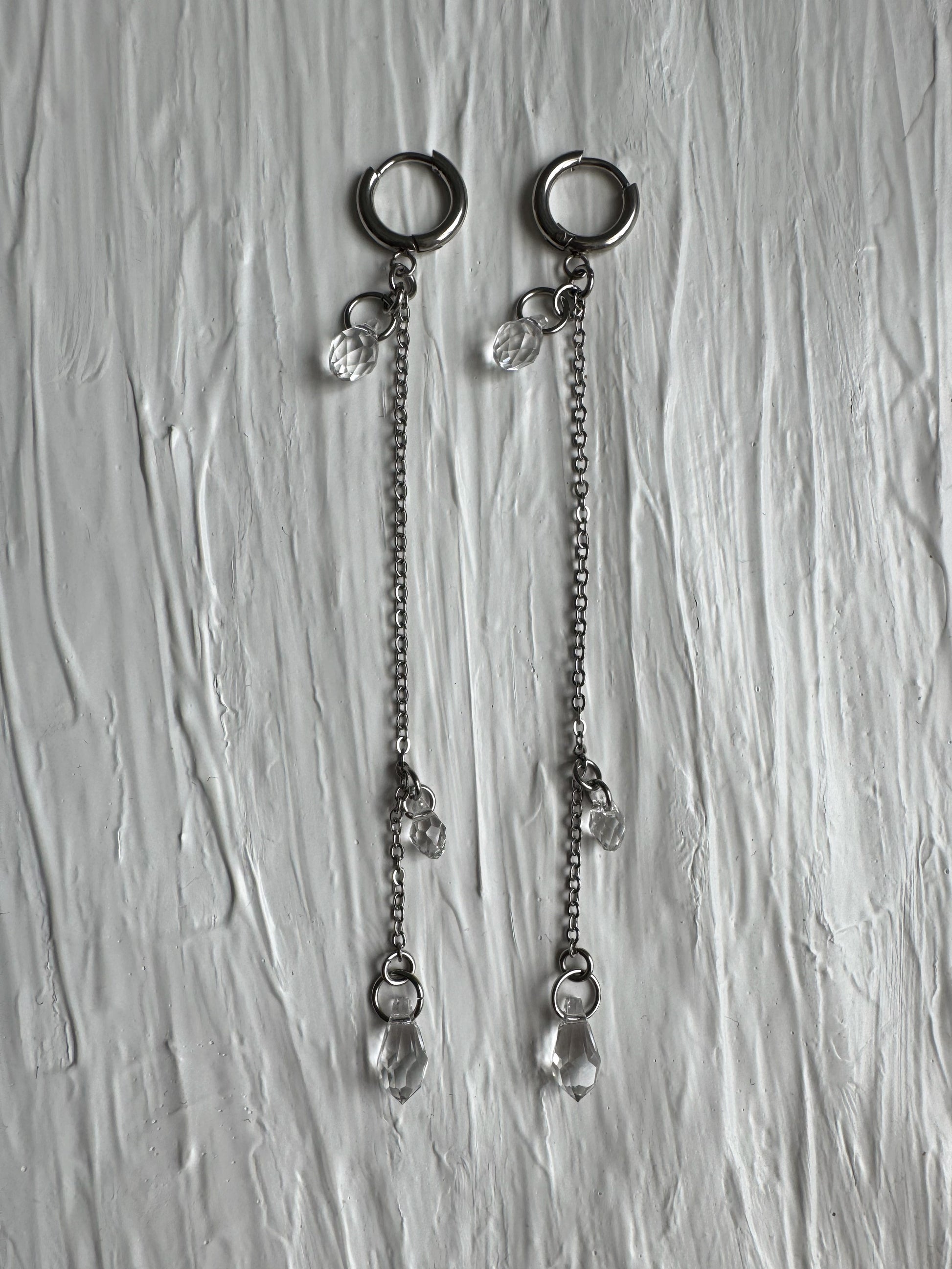 Creolen mit tropfenförmigen Kristallanhängern. Feine Handarbeit.