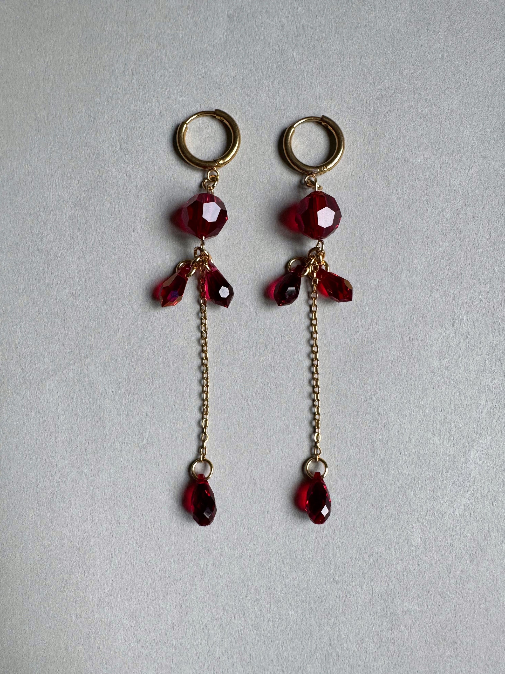 Boucles d’oreilles longues avec pendantes gouttes rouges