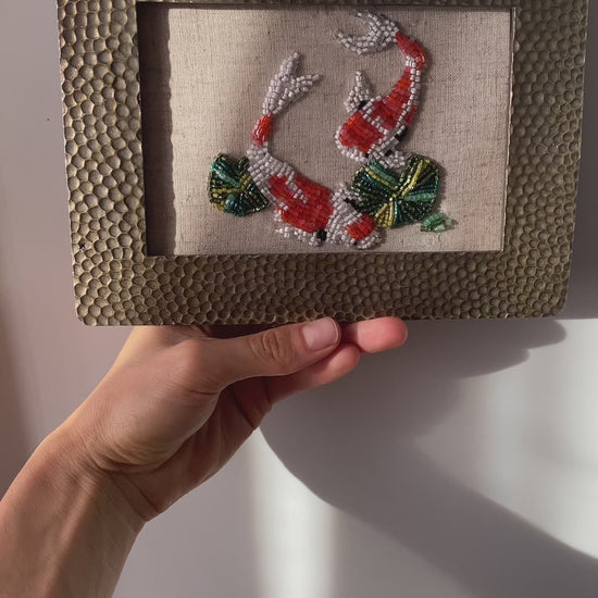 Le cadre décoratif brodé à la main de perles Carpes Koi.