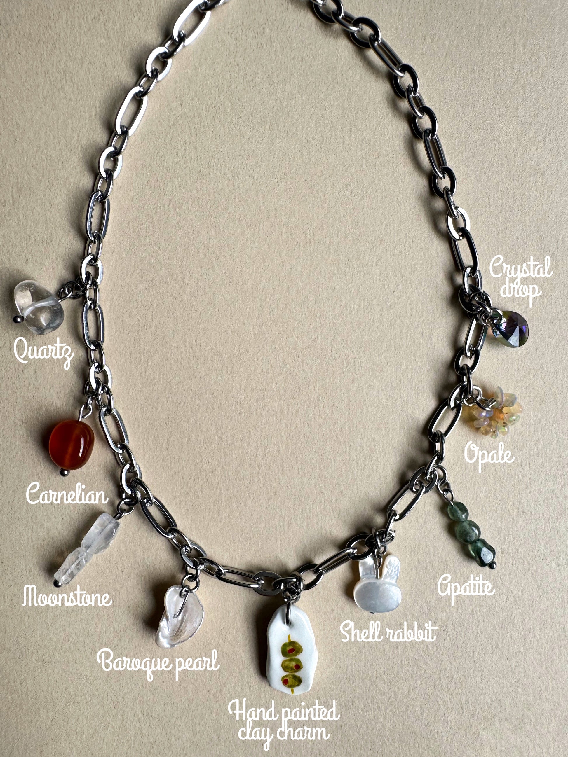 Chaîne en acier inoxydable avec 9 breloques fait main, convient à tous les jours et toutes les occasions.