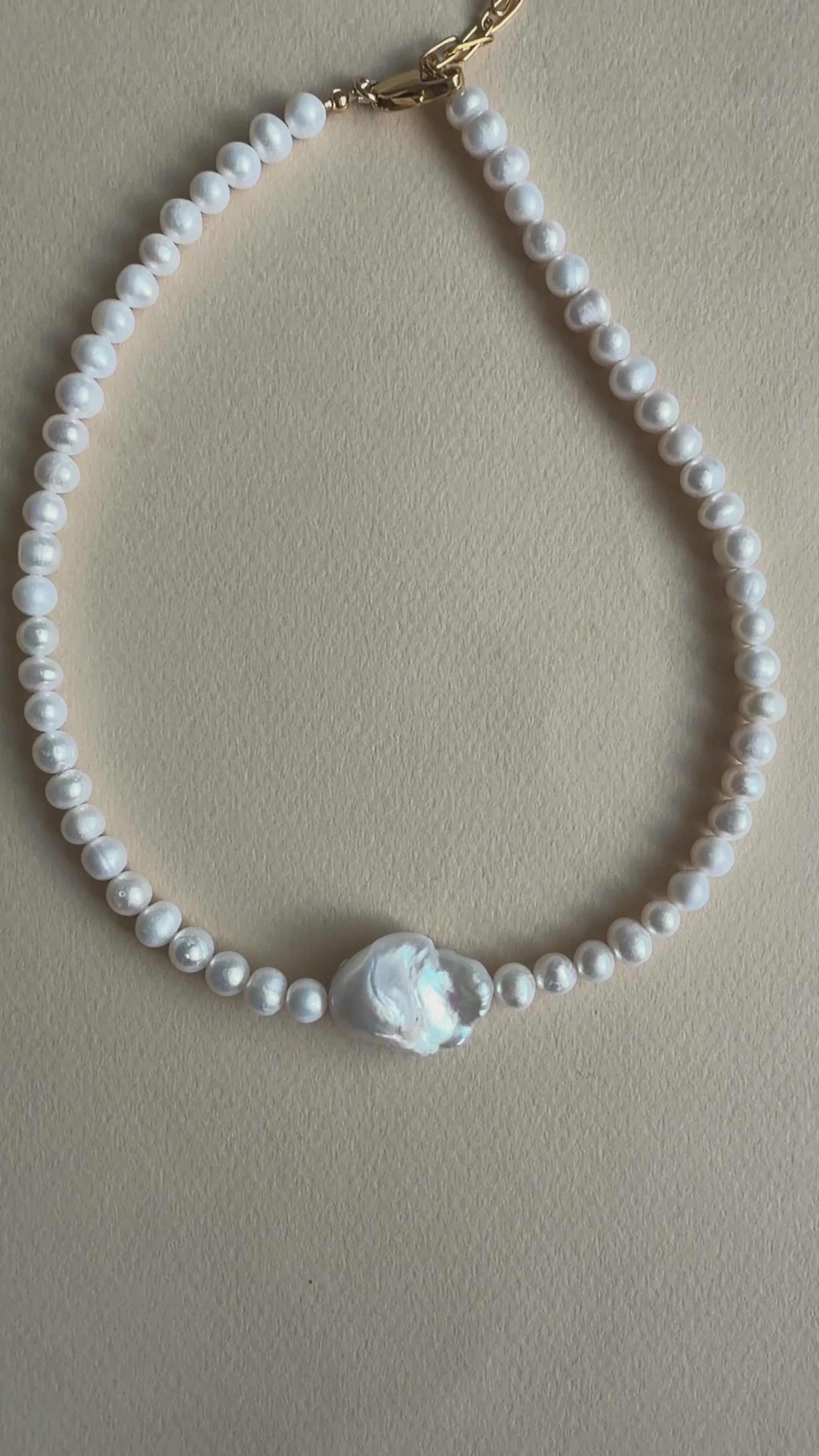 Collier de perles d’eau douce et perle baroque. Délicatement monté à la main.