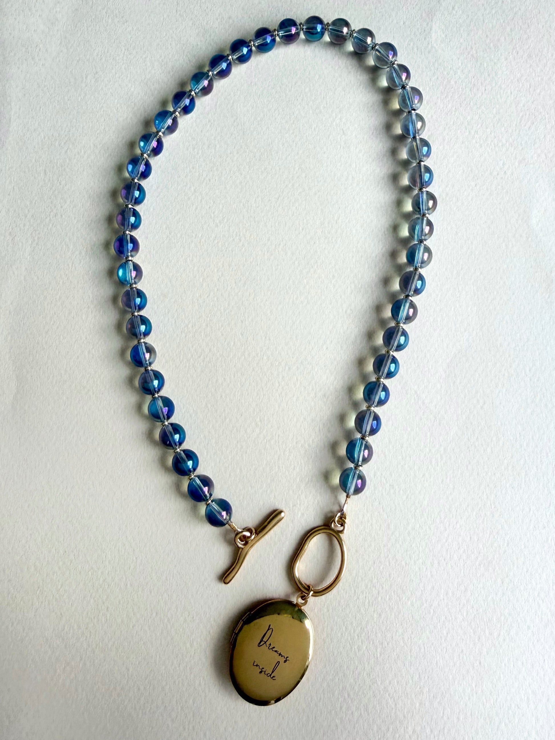 Collier quartz aqua aura avec médaillon ‘Dreams Inside’